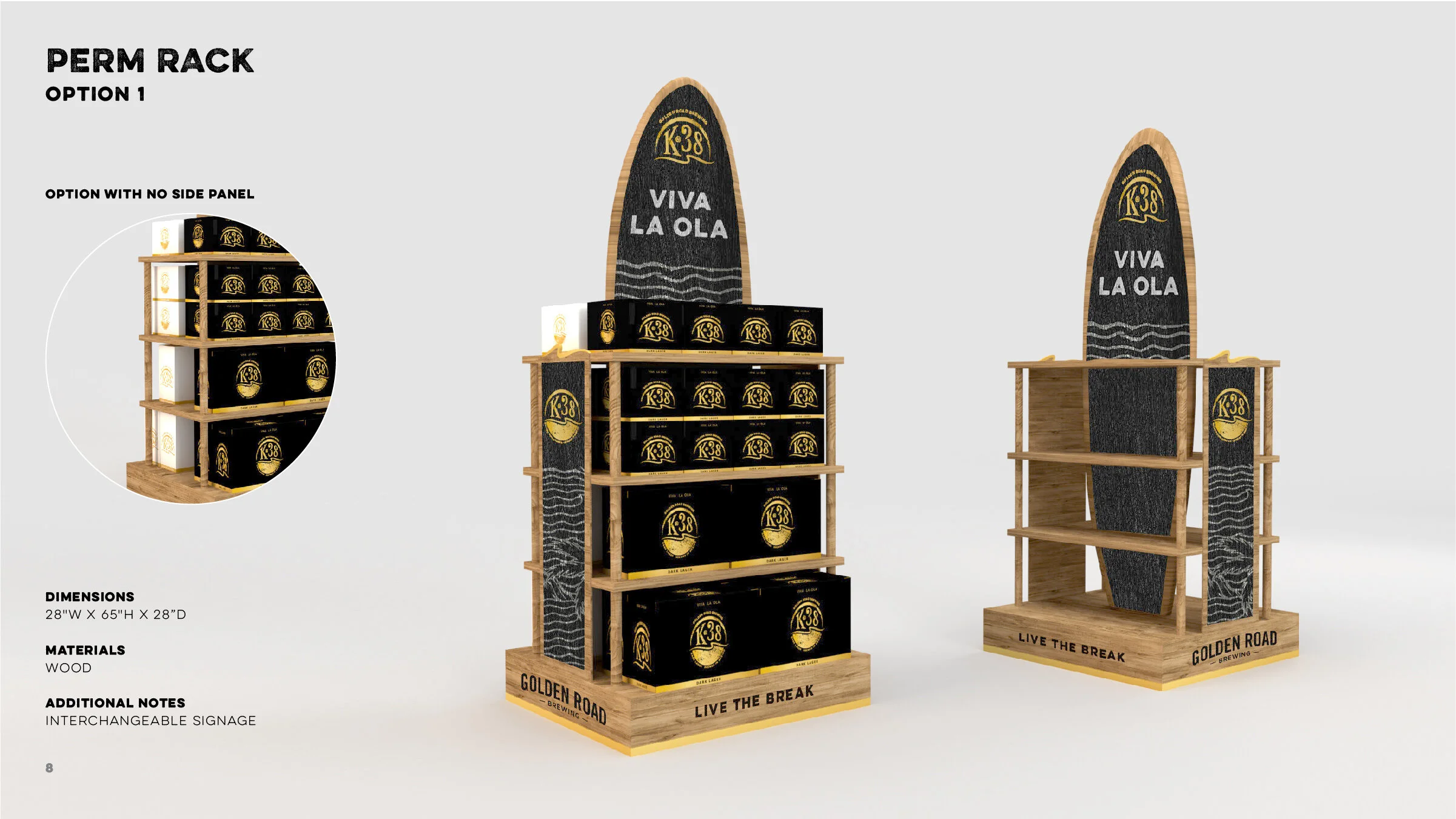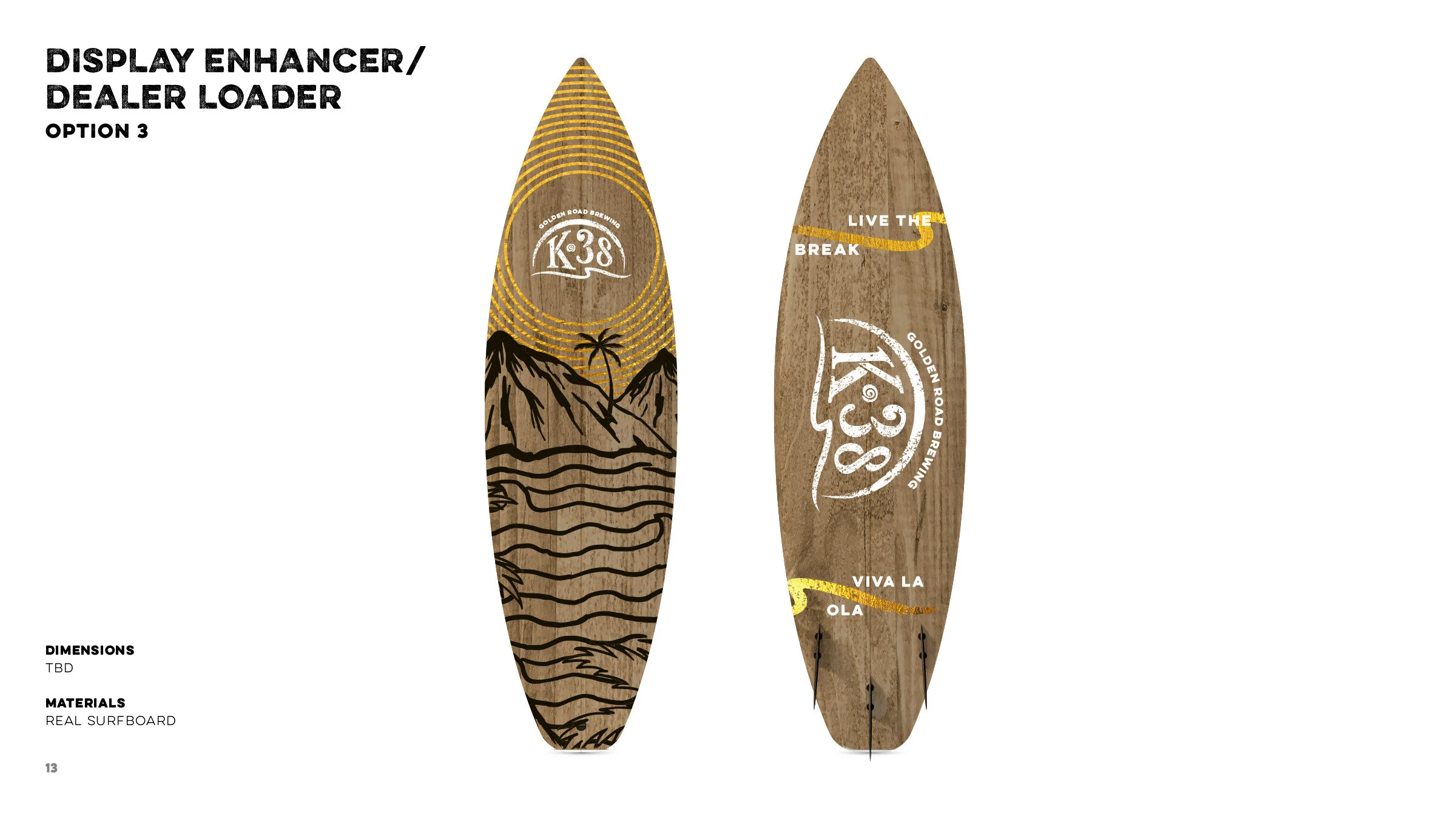 Our team was tasked with creating the overall look and feel, as well as point of connection material for the launch of Golden Road’s new beer K38. It’s name came from the not-yet-famous K-38 surf break, where Mexicans and Americans share their love of the water together. The Mexican import category is very competitive and is lead by Corona, Pacifico and Modelo. The goal of launching K38 was to take the Mexican import category in an authentically Golden Road way.